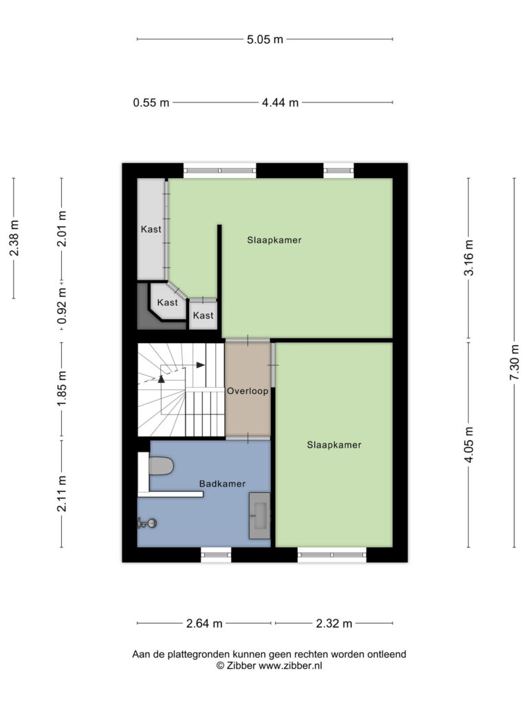 De hoofdslaapkamer aan de achterzijde beschikt over een inloopkast. De slaapkamer aan de voorzijde is eveneens royaal en netjes afgewerkt.