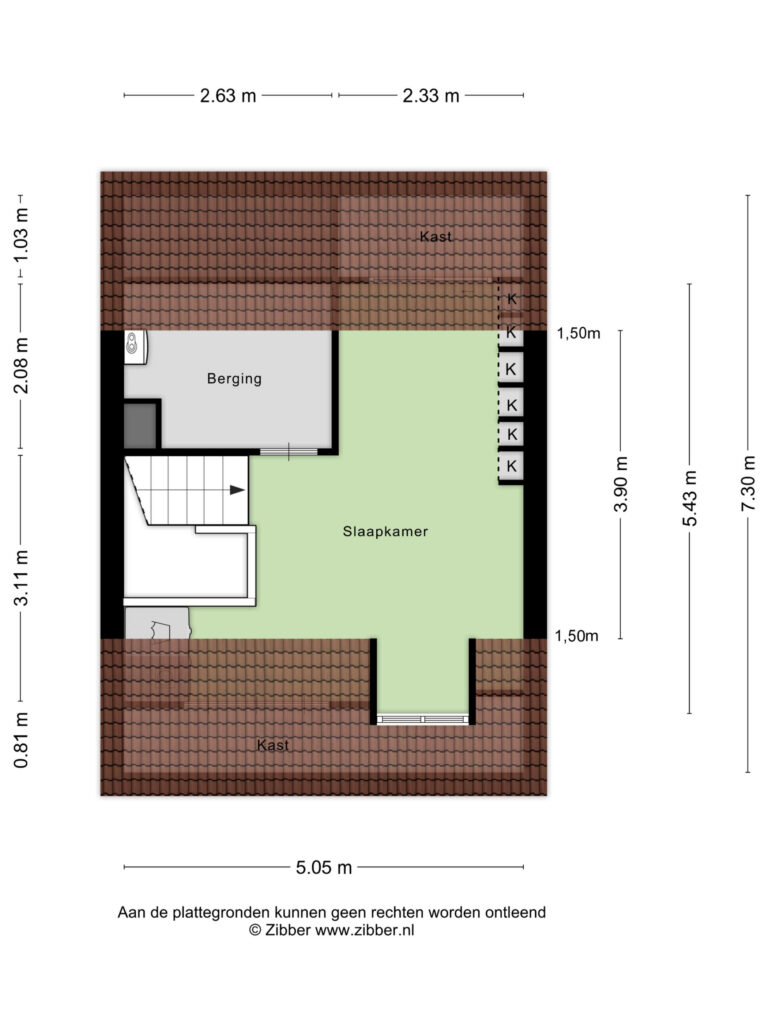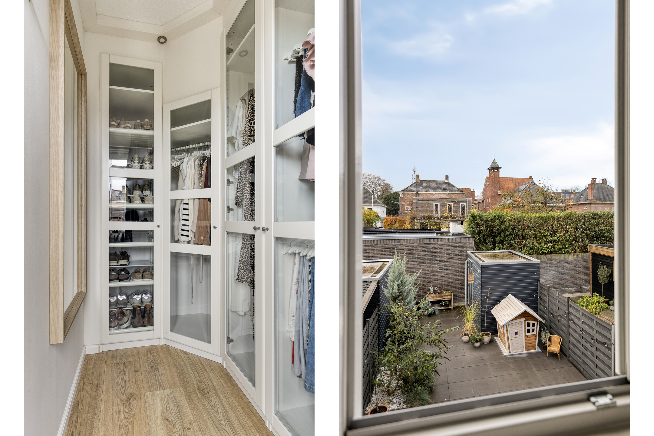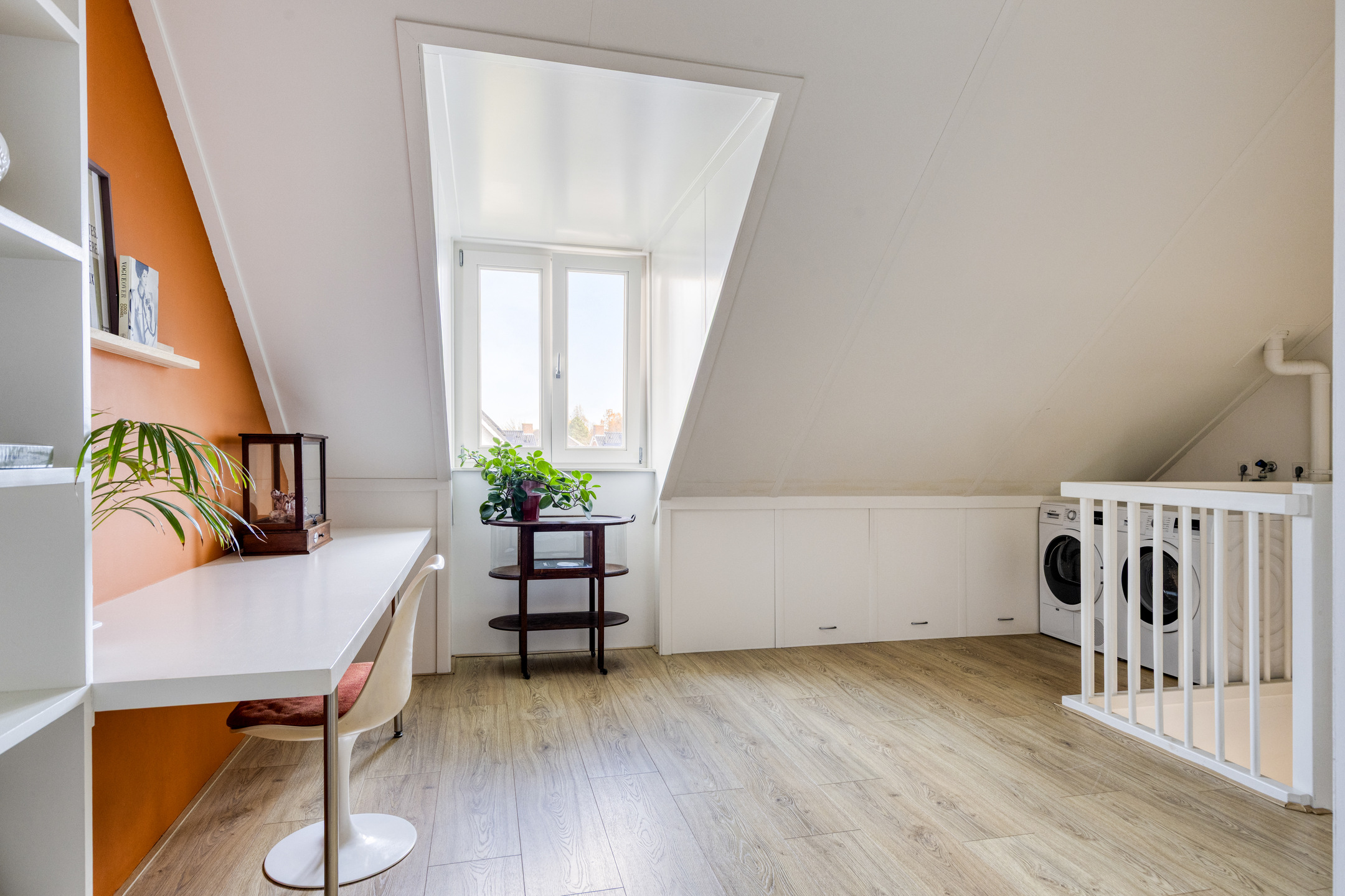 Volwaardige zolderverdieping met dakkapel en uitzicht over het hofje. Voorzien van laminaatvloer, wasmachine- en drogeraansluiting, werkplek en extra bergruimte. Eenvoudig is op de zolder een derde slaapkamer te realiseren.