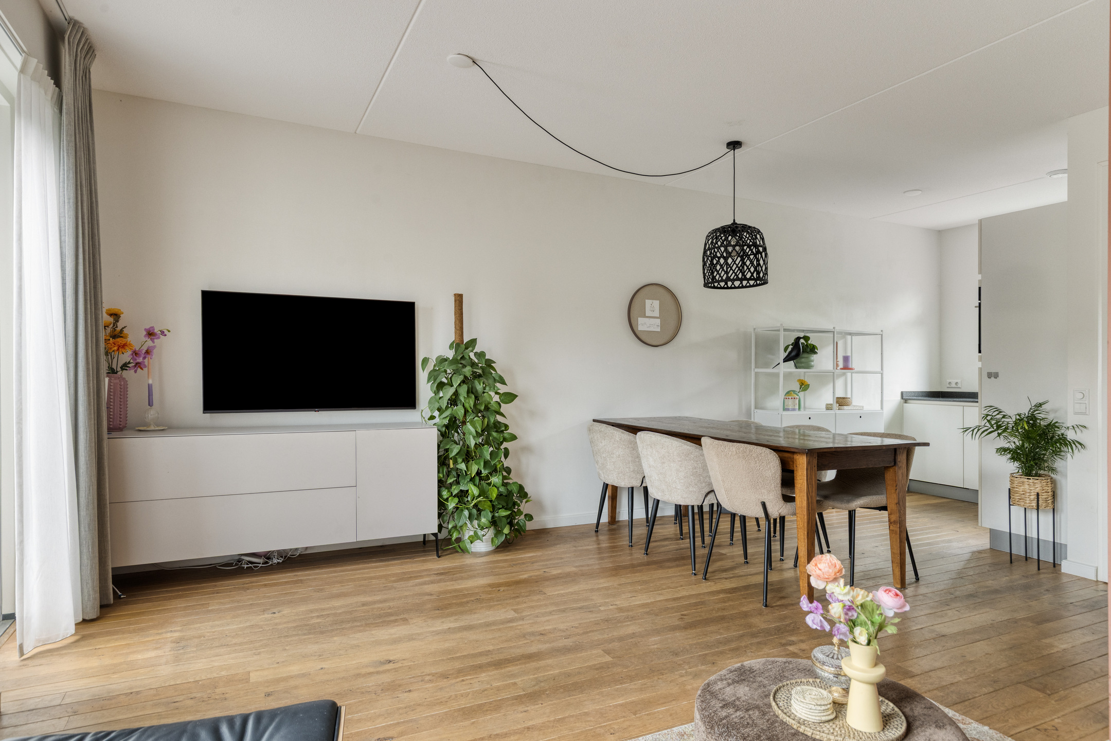 De woning beschikt over een lichte woonkamer met houten vloer, moderne keuken met uitzicht op het hofje, twee ruime slaapkamers en een volwaardige zolder met dakkapel. Dankzij de bodemwarmtepomp, WTW-installatie en hoogwaardige isolatie is dit een toekomstbestendige woning met een bijzonder prettig wooncomfort.
