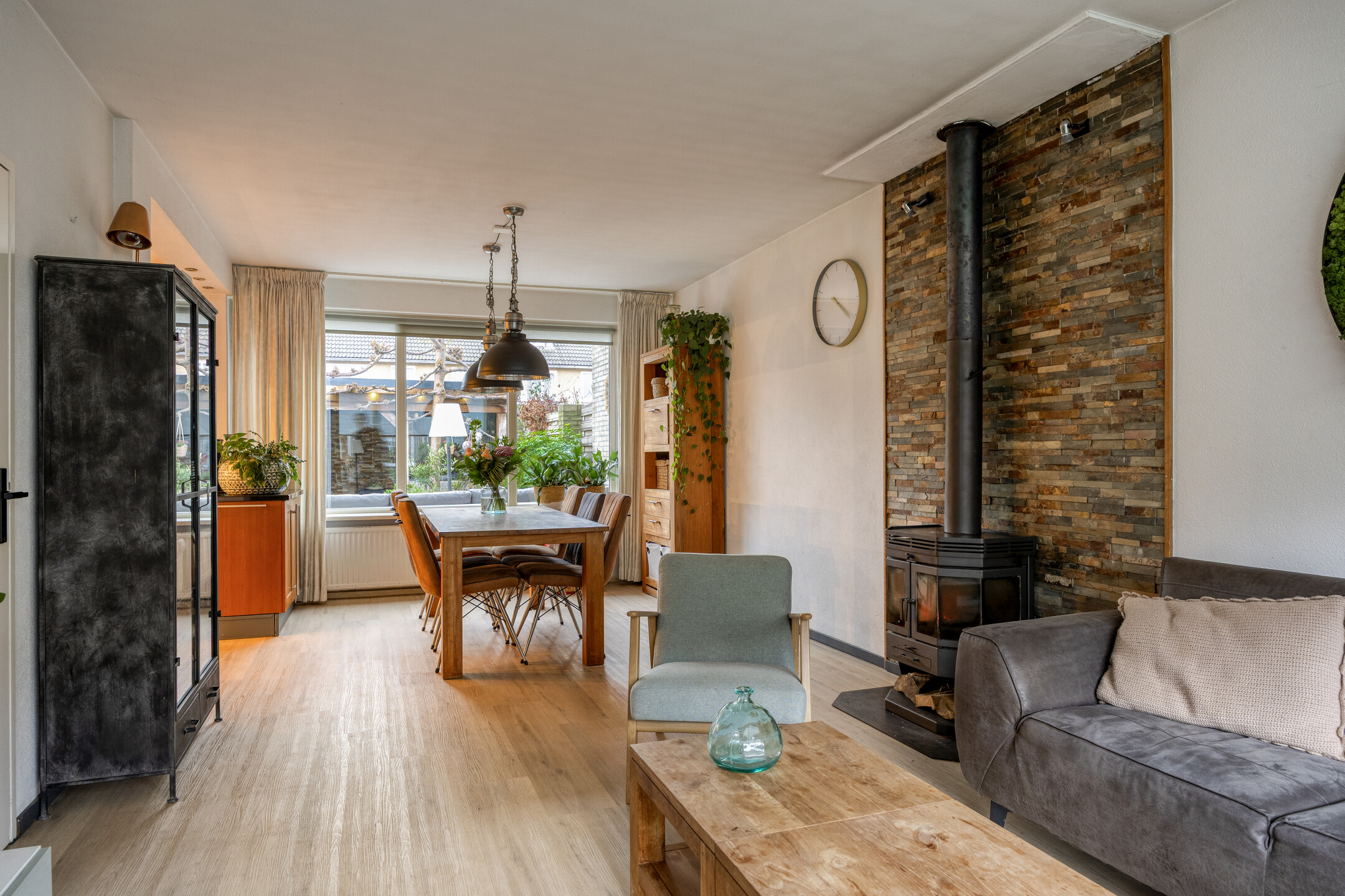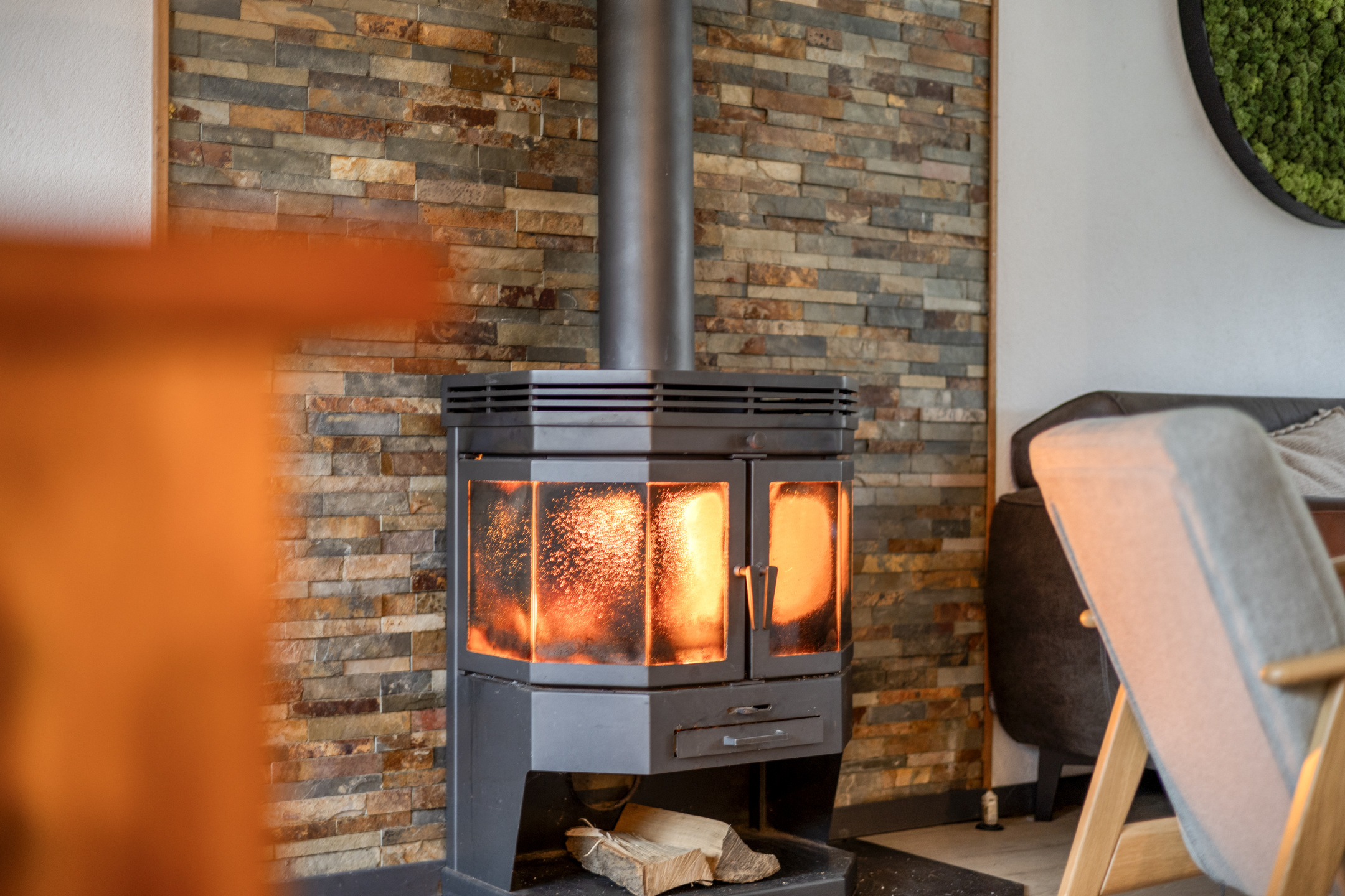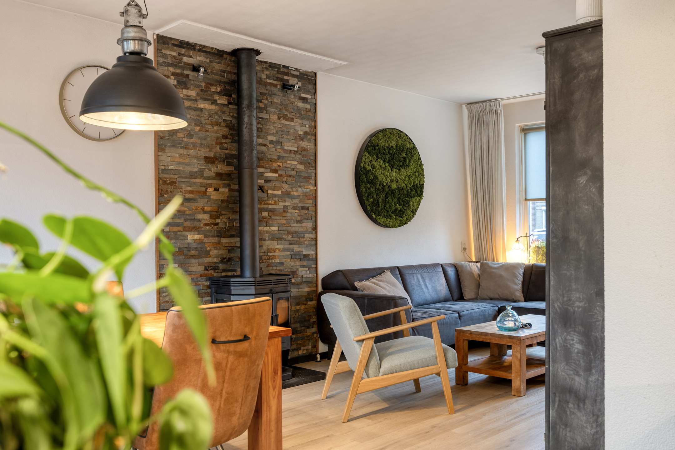 – Royale woonkamer met houtkachel en sfeervolle afwerking;