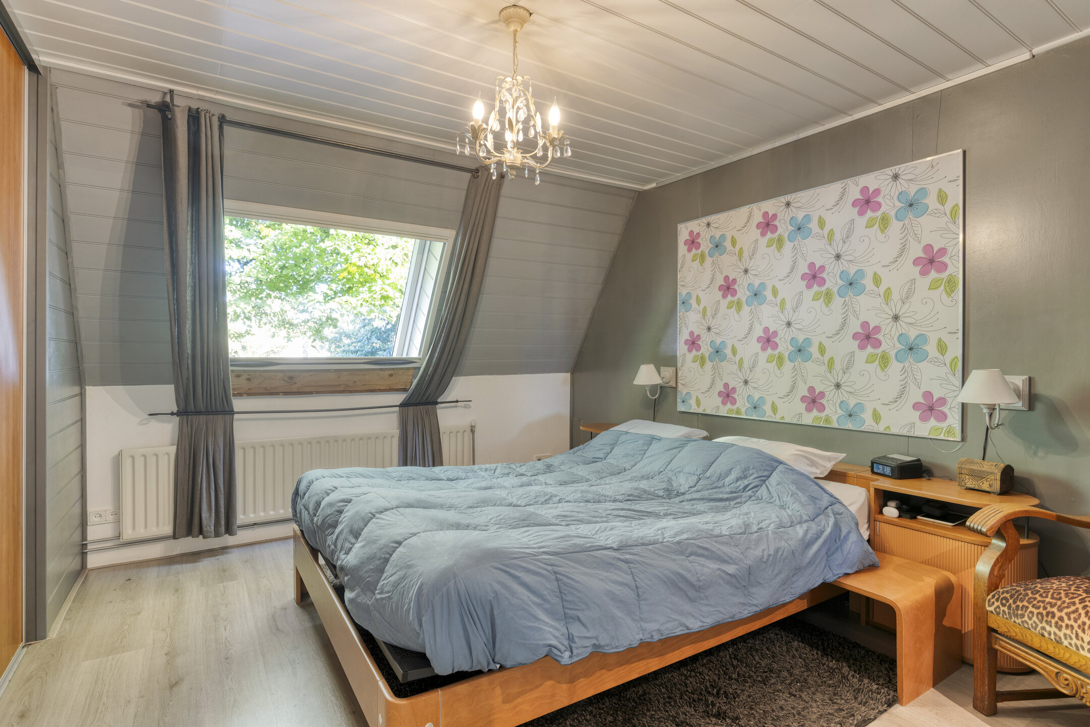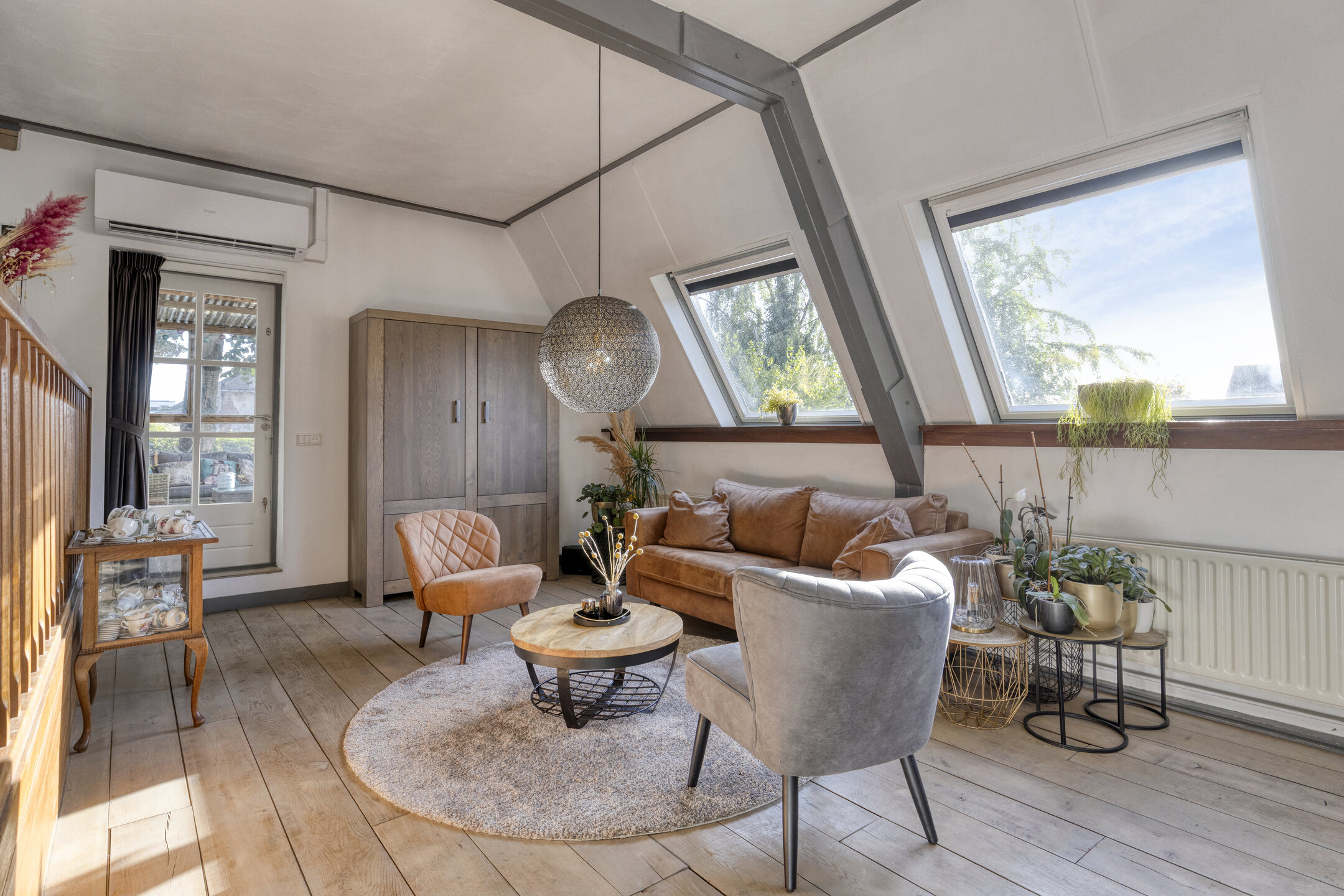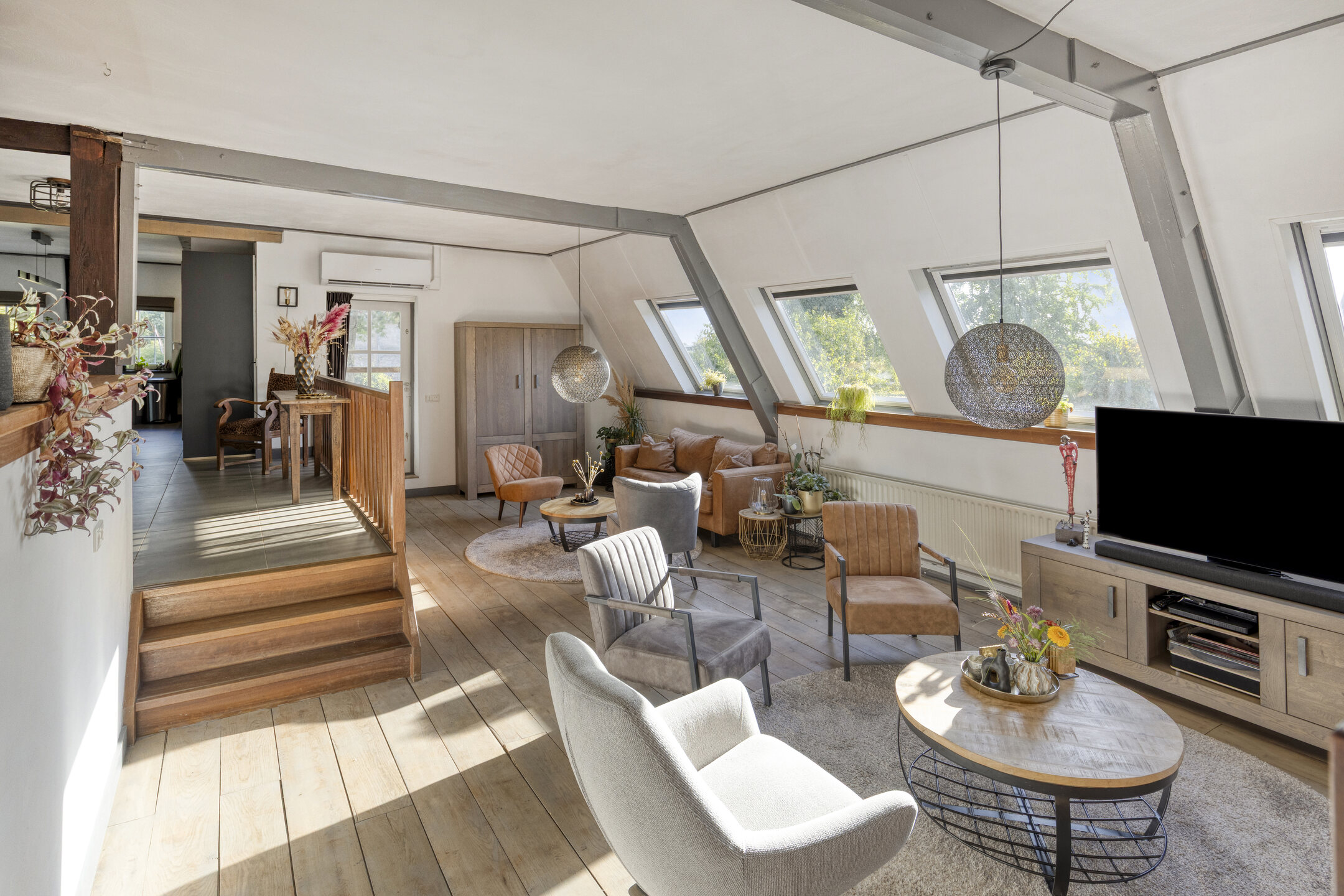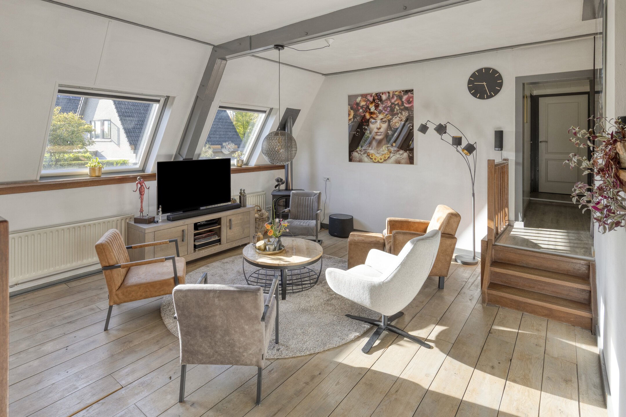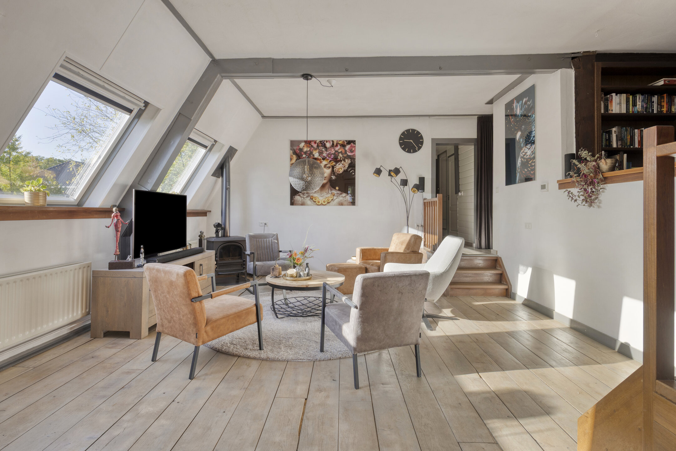 – Sfeervolle woonkamer met eiken vloer en dakramen;