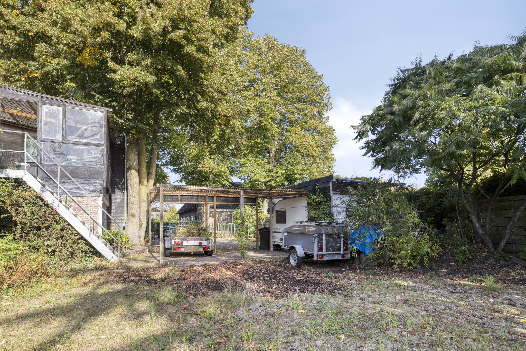 De ruime tuin biedt veel privacy en is voorzien van een eigen achterom. Achter het huis bevindt zich een dubbele carport en elektrische poort.